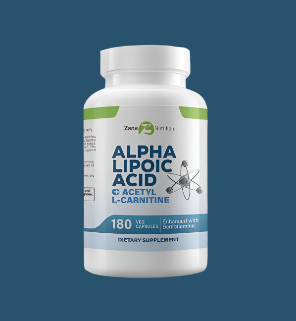 Alpha Lipoic Acid with Acetyl L-Carnitine combines two powerful compounds that support antioxidant defenses, promote healthy nerve function, and help maintain blood glucose metabolism within a normal range. Alpha-Lipoic Acid has been shown to enhance nerve conduction, protect nerves from damage, and reduce symptoms such as pain, tingling, and prickling in the extremities. Research indicates ALA supports blood glucose regulation and improves insulin sensitivity. Acetyl L-Carnitine has demonstrated benefits in alleviating neuropathic pain and aiding nerve fiber regeneration in individuals with peripheral and diabetic neuropathy. 180 count - Capsules.