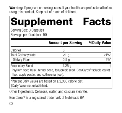 - Contains clinically studied precision prebiotic carrot fiber rhamnogalacturonan I (RG-I)